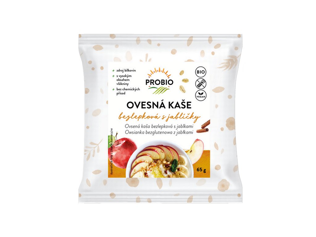 Kaše ovesná s jablíčky bezlepková jednoporcová 65 g BIO PROBIO